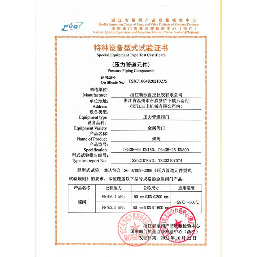 蝶閥 型式試驗(yàn)報(bào)告