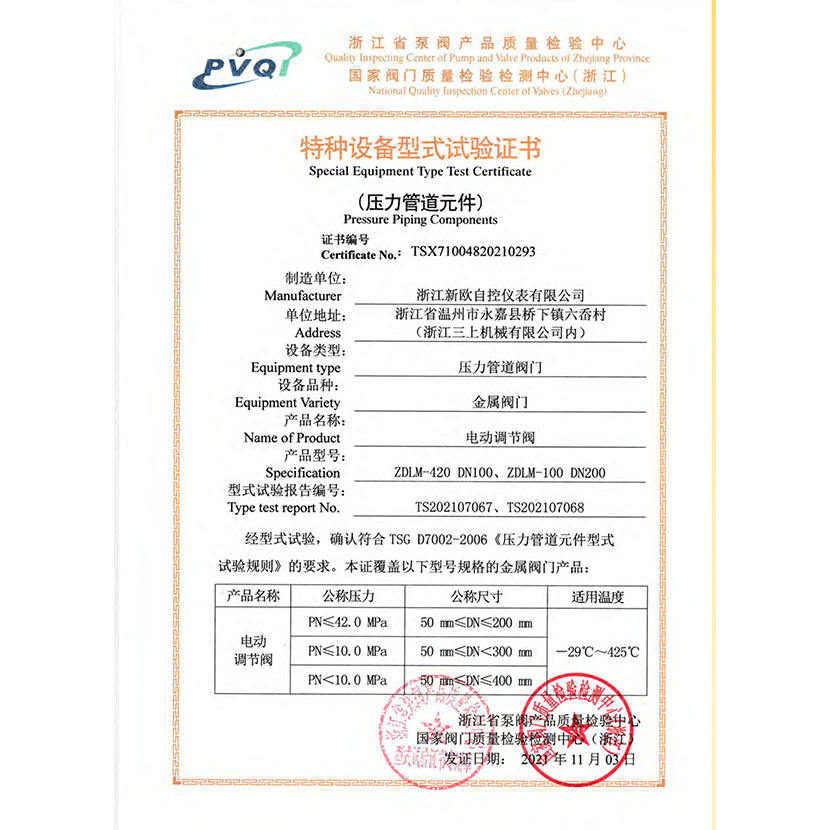 電動調節閥 型式試驗報告